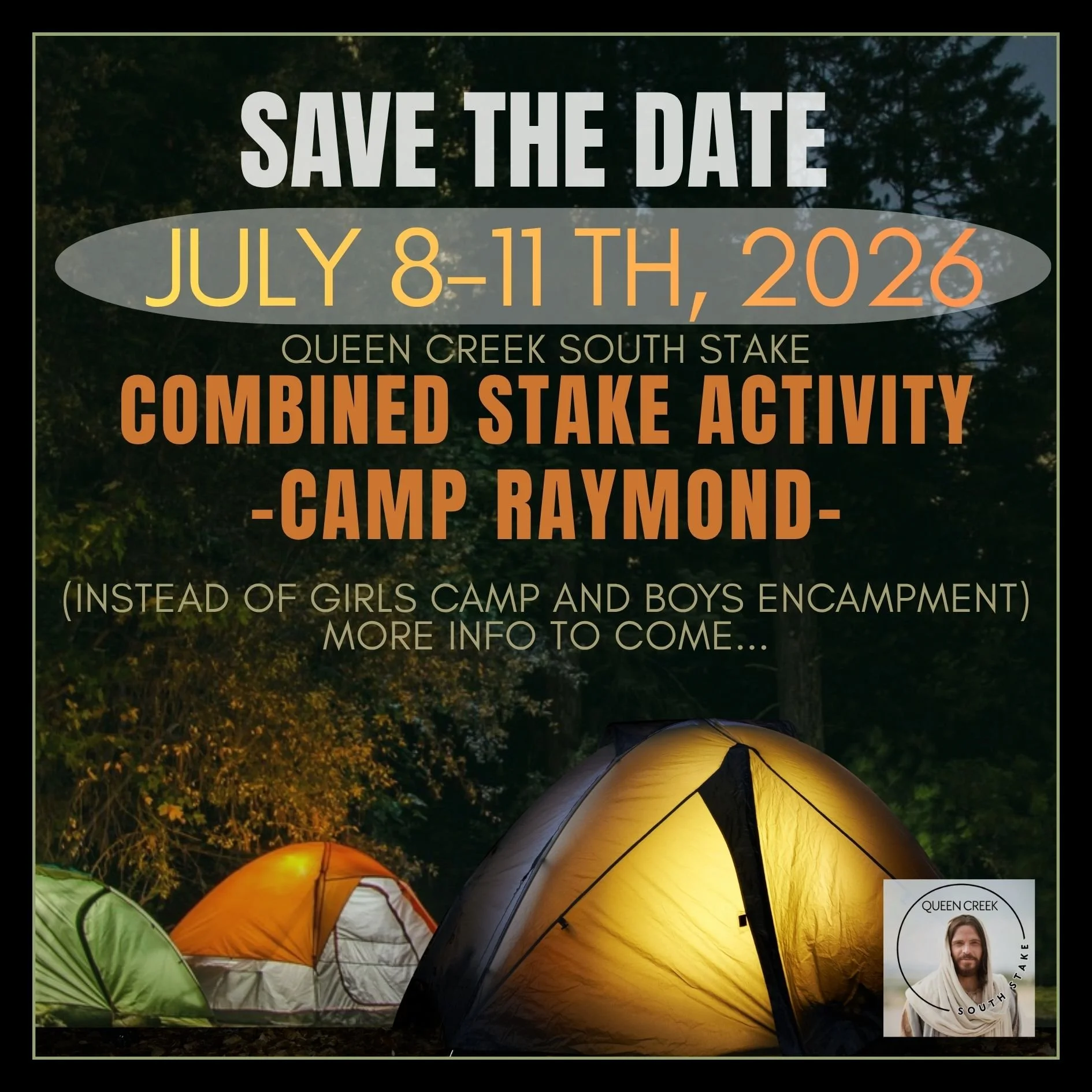 July 8th - 11thInstead of girls camp and boys encampment, this will be a combined stake activity at Camp Raymond for our Queen Creek South Stake